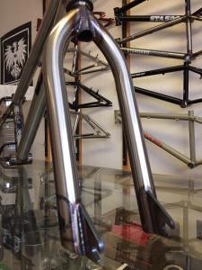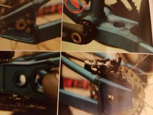 The frame uses purpose-designed dropouts, that can be flipped upside down…changing the radius distance from axle to ground. This provides a similar bottom bracket height to be achieved despite using two different wheel size setups.